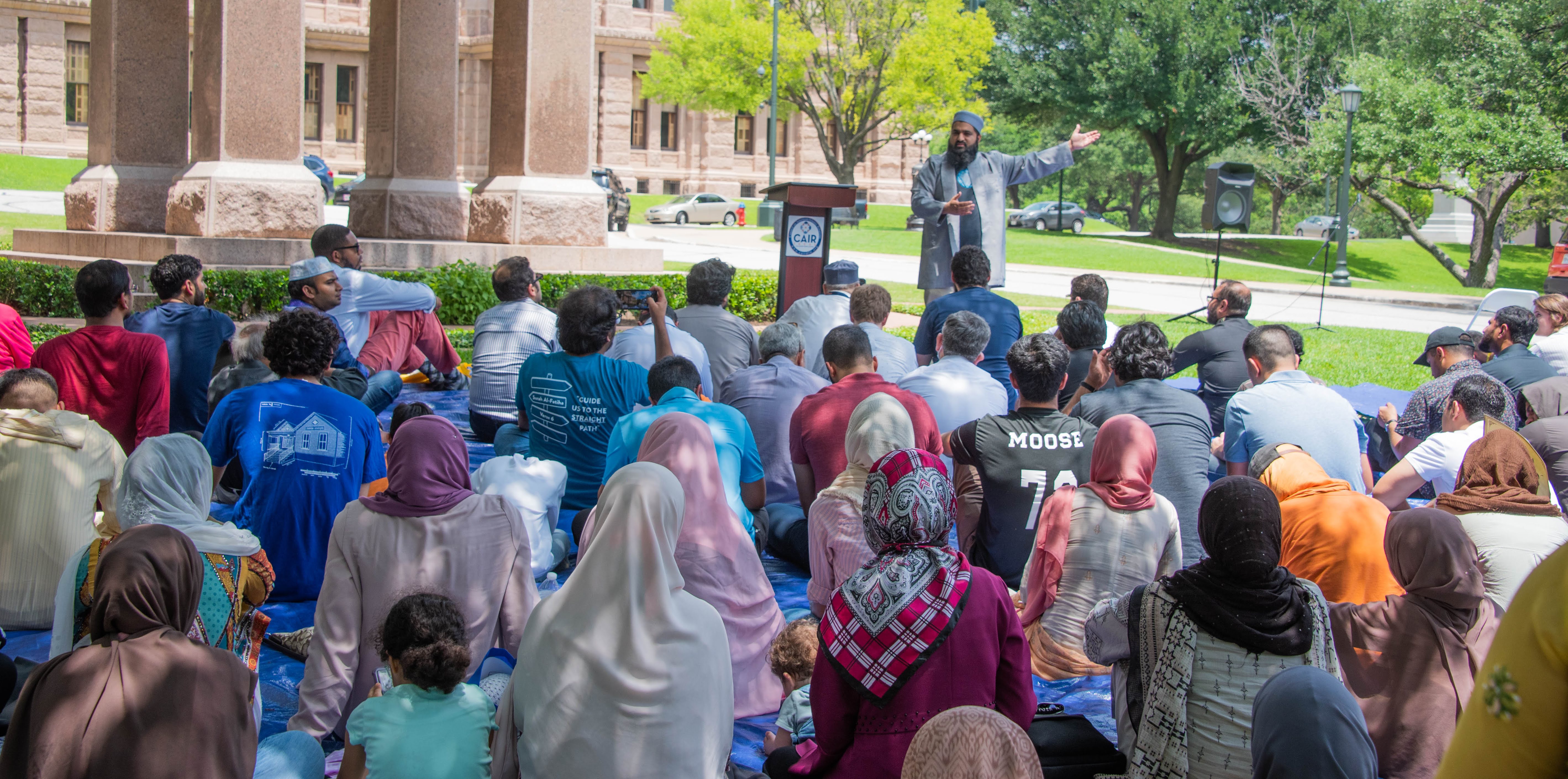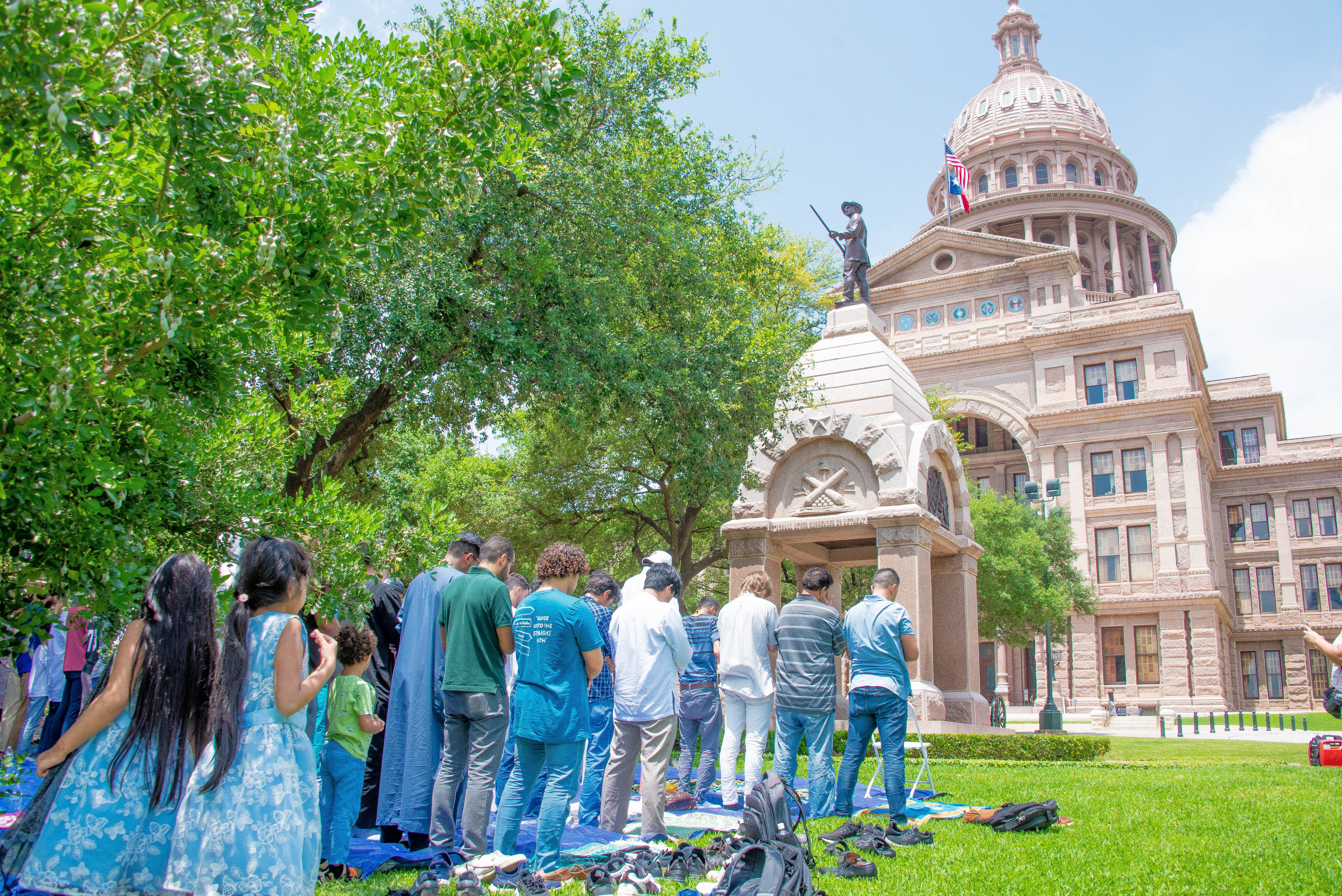 Last Friday, May 6th 2022, CAIR-Texas Austin & DFW hosted the first annual Eid Celebration at the Texas state capitol in Austin to celebrate the end of the holy month of Ramadan and the Muslim holiday of Eid al-Fitr. In addition to free international food, art, and community outreach, the event included a historic Jummah (Friday) prayer and khutbah (sermon) held on the capitol's South lawn.